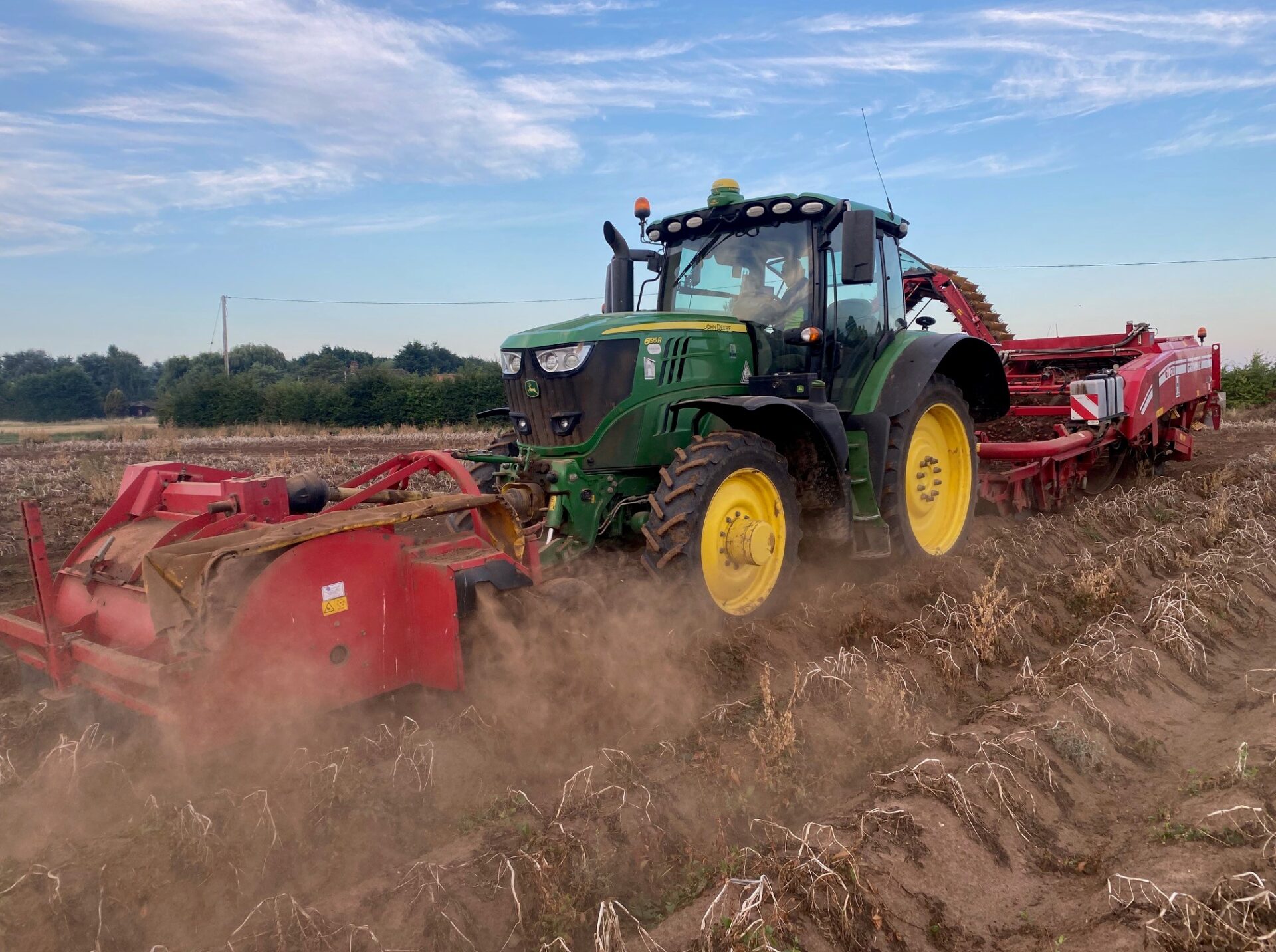 The crop emerged in the fields in direct relation to moisture – very uneven which can then cause issues for weed and pest management. We irrigated where we could (60%) to help the non-germinated seeds to grow and that worked well. We did not use the temporary derogation of neonicotinoid seed treatments due to the following crop restrictions (no flowering crop allowed to be grown in that field for 30 months), and fortunately aphid pressure which cause Virus Yellows was not too bad. The lack of rain reduced yield to 76t/ha, roughly 10t/ha below our 5 year average.