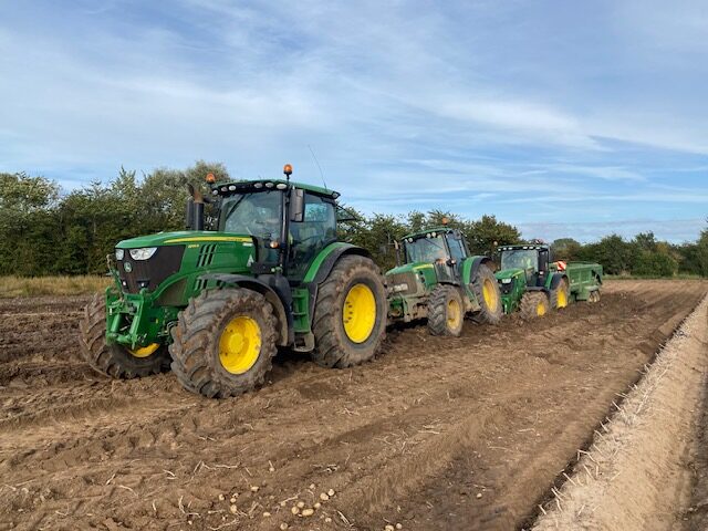 We had reduced our area by 40% this year due to conditions at the time of planning and ordering seed of world uncertainty and electricity prices. Planting was later, but into moist ridges, and the crops got away slowly but well. Irrigation during the odd dryer periods in May and June maintained tuber numbers on the roots, and the rainfall did the rest, with no irrigation in the summer months at all! Disease risk, blight, was higher due to the rainfall. The potatoes were taking longer to get to optimum marketable size, but with less area to harvest we risked letting them grown on and only started harvest on 25th September, 2 weeks later than usual. We had some wet lifting conditions in October, but got finished just before the massive 52mm rainfall event on 20th October. Yields are pleasing for Maris Piper at 21 box/ac (54t/ha) and OK for Lanorma at 20 box / ac (51t/ha). With just 30% of our Piper and 40% of our Lanorma on contracted prices, we hope to gain on the rest from excellent strengthening market prices.
