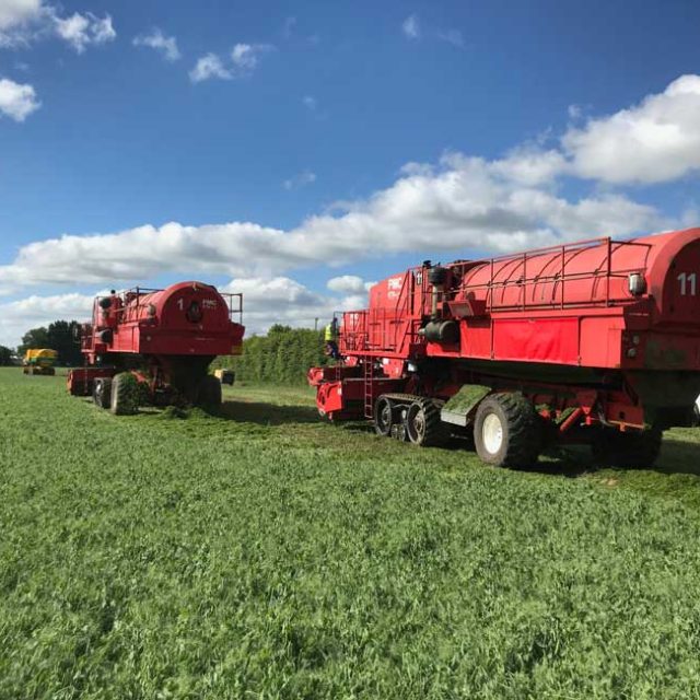 Vining peas – sold through a growers cooperative called Holbeach Marsh Cooperative. These are standard garden peas and petit pois peas for the frozen market. They are harvested by the co-ops pea viners, washed and frozen within 150 minutes at Kings Lynn (15 miles), Boston (20 miles) and Long Sutton (2 miles).