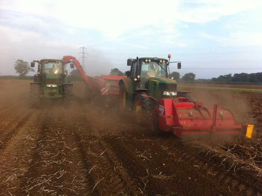700ha of Wisbech Series Grade 1 silt, split over 4 farms within a 7 mile radius of each other. Monmouth Farm is about 1 mile from the North Sea and is about 2 meters below sea level, with the land mainly reclaimed in 1660. Ferry Farm is 7 miles inland, about 1 meter below sea level and was reclaimed in 1632. Newton Hall Farm is from Roman reclamation, and is a more bodied silt. The fourth farm is on a mixture of FBT and contract farming at Sutton Bridge. 10 year average annual rainfall is 610mm (with 12% in August!).